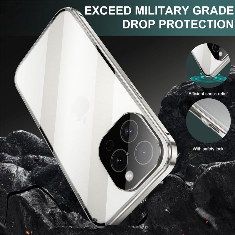 Vill du ha ett mobilskal som både förhindrar tjuvtittande och skyddar din telefon i alla riktningar? Magneto-telefonfodral använder dubbelsidigt glas + metallram mot fall, uppgraderad stark magnetisk adsorption + säkerhetslås, så att din telefon känns säker !