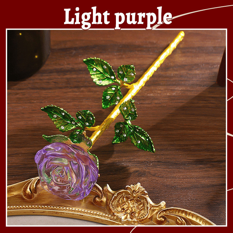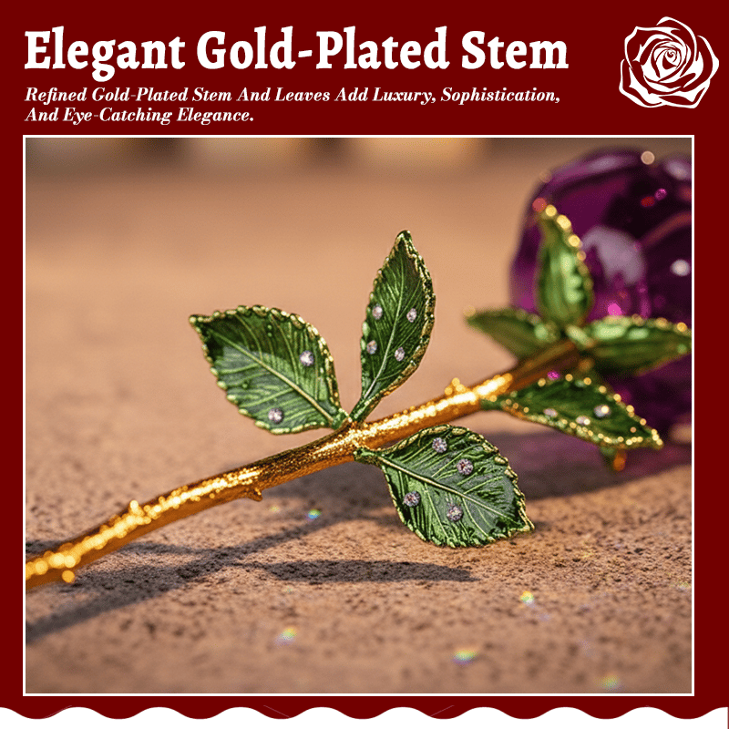 För att förstÀrka kristallblommans glans Àr stjÀlken och bladen förgyllda med raffinerad guldplÀtering, vilket ger en lyxig och sofistikerad kÀnsla. Kontrasten mellan den genomskinliga lila kristallen och det glÀnsande guldet skapar en exklusiv look som sticker ut pÄ ett sminkbord, skrivbord eller nattduksbord.