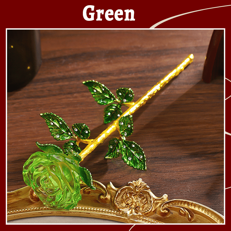 Det sĂ€tt pĂ„ vilket denna ros glittrar i ljuset Ă€r verkligen fascinerande. Bladen Ă€r tillverkade av högkvalitativt K9-kristall och har en drömlik fĂ€rgskiftning som reflekterar ljuset vackert frĂ„n alla vinklar. FrĂ„n de delikata lagren pĂ„ knoppen till de skimrande gröna bladen â varje detalj kĂ€nns konstnĂ€rlig och Ă€r Ă€nnu mer hisnande i verkligheten Ă€n pĂ„ foton.
